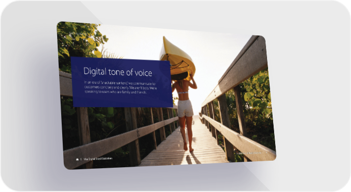 Getting started Digital tone of voice In an era of “snackable content,” we communicate to customers concisely and clearly. We aren’t bots. We’re speaking to users who are family and friends. Visa Digital Brand Guidelines © 2018 Visa. All Rights Reserved. 6