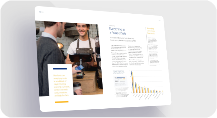 008 009 TREND #02 Rewarding Everything as Consumers, a Point of Sale Seamlessly Uber riders in participating Software and services turn almost any markets can now earn credits for shopping and dining under locale or any device into a potential POS. the Visa Local Offers with Uber rewards program. Riders with an issued Visa card Today, the line between face-to-face Retailers around the world are on file in the Uber app and upon signing up receive Uber and remote payment environments also demanding more of their POS Credits that can be applied has become so blurred in some to support their daily business toward future Uber rides. markets, it essentially no longer exists. operations, beyond single-purpose Riders can use the same Visa The era of single-purpose transaction payments capabilities. New form card on file with Uber to factors—like multifunction devices shop or dine at any of over terminals is coming to a close. running on open platforms—present 5,000 qualifying merchants, Software turns any locale, any device, new opportunities to displace cash. and the credits are triggered into a point of sale. A transaction automatically. can now take place at any point in The new POS is more than just a As credits add up in the Uber a shop-and-buy time line; it can be place for checkout—it’s a launchpad app, riders can redeem their Uber physical or digital. What this means is to offers that can build relationships credits on their next ride or save them for later—an effortless way that the point of sale is challenged to and reward customer loyalty. to claim their rewards. do more than process transactions. Everyday Transactions, 40 A.1 by Payment Channel Merchants can 30 accept payments Global Leading Edge Consumers* in a multitude of Generation Z** Millennials*** 20 ways, including Included here are the technologies used among surveyed consumer scanning a QR code, segments for their past 10 transactions. contactless credit * A proprietary population segment developed 10 by GfK based on a consumer’s propensity to be an early adopter, passionate enthusiast, cards, wearables, and influential in a given category. ** 14- to -17-year-olds who own and use a (%) and digital wallets. smartphone and a tablet or computer *** 18-34 and own a smartphone, have a savings e er or checking account, own/use a tablet or or ons odes vice tless ther n-St ransf e O computer, own a credit or debit card I yments yments a a QR C ontac Other Online Buy Butt P2P T obile P essenger Apps t Home D n- app P ther M obile M ther I Smar earables/C O M O W