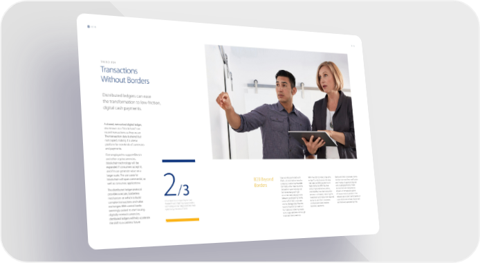014 015 TREND #04 Transactions Without Borders Distributed ledgers can ease the transformation to low-friction, digital cash payments. A shared, networked digital ledger, also known as a "blockchain," can record transactions as they occur. The transaction data is shared but not copied, making it a useful platform for new kinds of currencies and payments. First employed to support Bitcoin and other cryptocurrencies, blockchain technology will be expanded if consumers accept it, and if it can generate value on a larger scale. The use cases for blockchain will span commercial, as B2B Beyond Visa recently partnered with With Visa B2B Connect, Visa aims Banks and their corporate clients well as consumer, applications. Chain, a blockchain enterprise to significantly improve the way receive near real-time notification Borders company, to develop Visa B2B international B2B payments are and finality of payment. Signed The distributed ledger protocol Connect, a new near real-time made today by offering clear and cryptographically linked provides a secure, borderless / transaction system designed costs, improved delivery time, transactions are designed to 23 for the exchange of high- and visibility into the transaction ensure an immutable system mechanism on which to build value international payments process—ultimately reducing the of record. And all parties in the complex transactions and value of companies surveyed by Juniper between participating banks, investment and resources required network are known participants on exchanges. With central banks Research said that they expected the on behalf of their corporate by banks and their corporate a permissioned private blockchain technology to be integrated into their clients. Managed by Visa end clients to send and receive architecture, operated by Visa. seemingly poised to start issuing systems by the end of 2018. digitally minted currencies, to end, Visa B2B Connect will business payments. facilitate a consistent process distributed ledgers will help accelerate to manage settlement through the shift to a cashless future. Visa’s standard practices.
