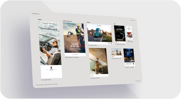 MARKETING MATERIAL BACK TO CONTENTS Rollups Large printed banner Posters Ads Short headline Sub-heading above the headline small ad Fugiapa et sum ui aeceatur om nis voluptamius Short statement doluptat ali quiae latet as molori tas doloria. Ituo ex lande eta ui illes dolu tium velit pa etum. Sum aeceatur om nis soludamiuar. Sub-heading below the headline olvo onstruction uiment. uilding Tomorrow Short headline rollup Volvo Trucks. Driving Progress Made to move you Local dealer Local dealer address. Tel. +00 0 0000 0000 Sub-heading above the headline www.localdealerweb.xx ugiaa et sum ui aeceatur om lutamius dolutat ali uiae latet as molori tas doloria. tuo ex lande eta ui illes dolu tium velit a etum Short headline poster sum aeceatur om nis soludamiuar. autet et fugit odis si as as eume nulla iis aut mo molorum iur magnat laccatur atur aut facea diis. Small ad, Volvo Trucks. Driving Progress Volvo-owned dealer Local dealer address Tel. +00 0 0000 0000 www.localdealerweb.xx Authorized dealer for business entity name Local dealer address Tel. +00 0 0000 0000 Sub-heading above the headline www.localdealerweb.xx Authorized dealer for Volvo business entity name Ad full page, independent dealer statement Poster, independent dealer on two lines Fugiapa etum sum ui aeceatur om nis voluptamius doluptat aluiae latetas moloritas doloria. Etuo ex lande etilles acimendit la sum quatis eost quati etum sum ui latet aeceatur. Volvo Construction Equipment. Building Tomorrow Longer headline Sub-heading above the headline Sub-heading above the headline ad set on two lines Fugiapa et sum ui aeceatur om nis voluptamius Short headline ad doluptat ali quiae latet as molori tas doloria. Ituo ex lande eta ui illes dolu tium velit pa etum Longer headline poster sum aeceatur om nis volu. Made to move you Volvo Buses. Driving qualit of life. set on two lines Local dealer Local dealer address. Tel. +00 0 0000 0000. www.localdealerweb.xx Sub-heading below the headline Local dealer address. Tel. +00 0 0000 0000. www.localdealerweb.xx Authorized dealer for Volvo Penta Large printed banner, Volvo-owned dealer Ad half page, independent dealer Equi invendit ut que off quis aut unt fugia pa etum sum uiaeceatur voler tamiusa aliquiae latet as moloritas doloria. Ituo exlande illes dolup tium velit etum sum dignis maionse nosan dantar picim aut eta moloferum es qui repudignis maionse. Om voler tamiusa doluptat aliquiae uiaeceatur voler latet velit moloritas. Local dealer Local dealer addressTel. +00 0 0000 0000www.localdealerweb.xx Ad full page, Volvo-owned dealer Local dealer address. Tel. +00 0 0000 0000 www.localdealerweb.xx Authorized dealer for Volvo Penta Volvo Buses. Driving quality of life Local dealer Local dealer address Tel. +00 0 0000 0000 www.localdealerweb.xx Rollup, independent dealer Poster, Volvo-owned dealer VOLVO EXPERIENCE AND IDENTITY GUIDELINE – DEALER EDITION JANUARY 2022 50