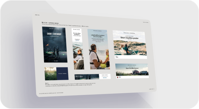 LOGOTYPES BACK TO CONTENTS Examples – logotype placement Shown below are examples of how to place the Volvo Penta Spread Word Mark on different assets. Short headline Long headline brochure Sub-heading above the headline Short statement web banner Sub-heading below the headline set on two lines Short headline poster Sub-heading below the headline Made to move you Lorem ipsum dolor amet consectetur adipiscing Lorem ipsum dolor amet conse elit ut ed doe officim porerum et inerea tetur edicarum forarer. tur rero mod quidi nosam, nobis dis eveles. CALL TO ACTION Made to move you Local dealer Local dealer address Tel. +00 0 0000 0000 www.localdealerweb.xx Made to move you Sub-heading above the headline Made to move you Short headline banner ShorShort headline t headline ssocial mediaocial media Made to move you Made to move you Made to move you Sub-heading above the headline Short headline Lorem ipsum dolor edicarum consectetur adipis. Local dealer address Tel. +00 0 0000 0000 Made to move you CALL TO ACTION www.localdealerweb.xx Authorized dealer for Volvo business entity name Tagline The tagline is never used in direct connection to the Volvo Penta logotypes. The tagline may be presented as text on at least clear zone distance from the Volvo Penta Spread Word Mark logotype. The maximum size of the text equals the height of the logotype. VOLVO EXPERIENCE AND IDENTITY GUIDELINE – DEALER EDITION JANUARY 2022 13