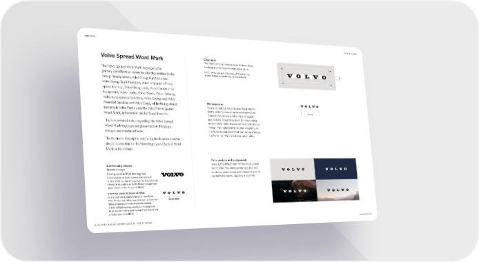 LOGOTYPES BACK TO CONTENTS Volvo Spread Word Mark Clear zone The minimum clear zone is equal to three times 3X 3X the height of the Volvo Spread Word Mark. The Volvo Spread Word Mark logotype is the NOTE: When placing the Volvo Spread Word Mark next X primary identification carrier for all Volvo entities (Volvo to other logotypes a double clear zone is preferred. Group Headquarters, Volvo Group Functions and 3X 3X Volvo Group Truck Divisions, Volvo corporate offices/ operations e.g., Volvo Group India, Volvo Construction Equipment, Volvo Trucks, Volvo Buses, Volvo Defense, Volvo Autonomous Solutions, Volvo Energy and Volvo Financial Services and Volvo Cars), while the registered Minimum size trademark Volvo Penta uses the Volvo Penta Spread To ensure that the Volvo Spread Word Mark is clearly visible, it should never be rendered less 20 mm Word Mark, information can be found here >>. than 20 mm wide in print or 42 px in digital The fundamental rules regarding the Volvo Spread applications. Exceptions apply for merchandise and products under the discretion of Volvo Group Word Mark logotype are presented on this page. Design. For digital interfaces where legibility of Always use master artwork. the Volvo Spread Word Mark can not be ensured, the Volvo Iron Mark should be used instead. The business descriptor and/or tagline is never used in direct connection to the Volvo logotypes (Spread Word Mark or Iron Mark). Color versions and backgrounds Additional guidance Black is the default color for the Volvo Spread Secondary usage: Word Mark. The white version is to be used The original Volvo Word Mark logotype on darker backgrounds and images to provide is only used on parts and components and until contrast and clarity. Legibility is a priority. further notice on flags and signage. No exceptions are allowed unless approved by the Brand management department at Volvo Group HQ (BEX). The Volvo Group corporate identifier, is only used when legally required to identify the Volvo Group corporation, representing a consolidated family of brands, or when required by explicit, market related business situations. All usage is to be approved by the Brand management department at Volvo Group HQ (BEX). VOLVO EXPERIENCE AND IDENTITY GUIDELINE – DEALER EDITION JANUARY 2022 8