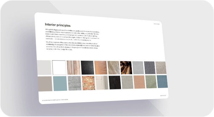 BACK TO CONTENTS Interior principles Although the shapes and sizes of our facilities vary greatly, as do the nature of our operations, one shall always feel an instant connection to Volvo when visiting us worldwide. The Volvo interior look & feel is more than just a logotype and a poster on wall. Furniture, lighting, efficiency level, scent and sound are all examples of elements that speak to our senses and contributes – consciously or unconsciously – to the Volvo brand impression. May it be a corporate office, a production site, an exhibition area, a recording studio or a dealership, the recognition of the Volvo interior style shall be evident no matter the place or context. We achieve this by leaning on the principles of Scandinavian interior design according to the Volvo Design Philosophy. VOLVO EXPERIENCE AND IDENTITY GUIDELINE – DEALER EDITION JANUARY 2022 72