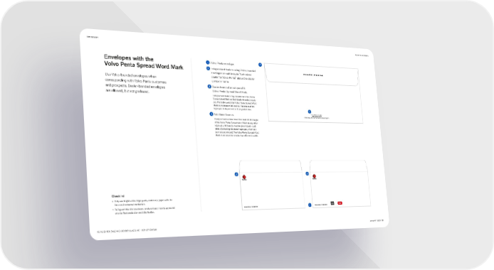 STATIONERY BACK TO CONTENTS Envelopes with the 1 Volvo Penta envelope. 1 Volvo Penta Spread Word Mark 2 Independent dealers using Volvo-branded envelopes should include “Authorized Use Volvo-branded envelopes when dealer for Volvo Penta" above the dealer company name. corresponding with Volvo Penta customers and prospects. Dealer-branded envelopes 3 Dealer-branded envelope with Volvo Penta Spread Word Mark. are allowed, but not preferred. Independent dealers may include the Volvo Penta Spread Word Mark on their dealer-branded envelo- pes. Preferably place the Volvo Penta Spread Word Mark in the bottom left corner. Placement of the logotypes is dependent on local postal rules. 2 Authorized dealer for Volvo Penta 4 Additional brands. Dealer company name Street address | Building | Area City, State, Zip code | Country Always ensure a clear zone of at least 3X the height of the Volvo Penta Spread Word Mark to any other logotypes. All brands must be given equal visual status (excluding the dealer logotype, which can be more prominent). The Volvo Penta Spread Word Mark must never be smaller than 45 mm in width. 3 3 Checklist • Only use bright white, high quality stationery paper with the best environmental credentials. OTHER OTHER • Safeguard that the envelopes produced are properly approved 4 BRAND BRAND prior to final production and distribution. VOLVO EXPERIENCE AND IDENTITY GUIDELINE – DEALER EDITION JANUARY 20221 59