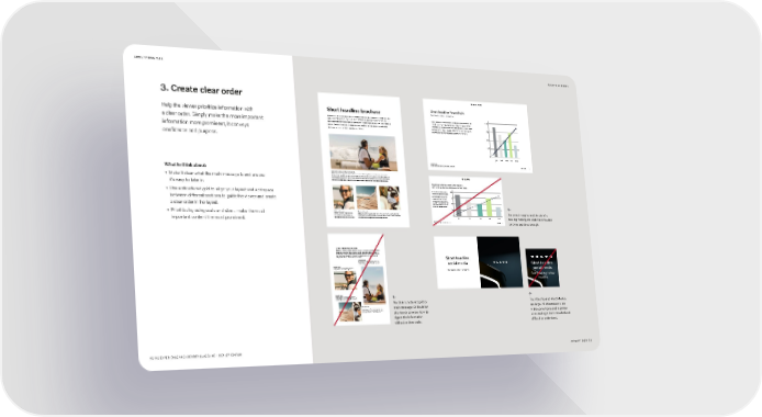 LAYOUT PRINCIPLES BACK TO CONTENTS 3. Create clear order Short headline PowerPoint Help the viewer prioritize information with Short headline brochure Sub-heading below the headline Ullaborunti comnis magnimaximet eos sit enis aut rae. Itataquam, totae ipici rem am uaeped maiore aspero ip sae do lorpos oles aut es 100 facepudis ma que lam incimi, sit eiunt velestiat quae volore volorro molupta tur illandu er cimaim aut eseui cus olec tem acest olore a clear order. Simply make the more important restia dolorae exerro expliandi di berectem il ipsant volo bearci tem. Abo. Namus repudae incti cullabo reproriatur a de reper orit Sum olest odis ut faceatur, simaximus esercitatis qui dollitat. Idi rem as sim vendia dolo uibusd amen duc ili bus es pla borempor sant eter cul lo 75 information more prominent, it conveys doluptaeria vitem ra dolenissedis eum dolupti. erchiliuost eernam esed essus dolup tur re inciis confidence and purpose. 50 25 0 jan feb mar apr may Business Entity Department name | Document name/Issuer | Classification 2021-00-00 4 What to think about: Ullaborunti comnis and ullaborunti comnis Ullaborunti comnis magnimaximet eos sit enis aut raeera. Itataquam, totae ipici rem facepudis ma que lam incimi, sit eiunt velestiat quae volore volorro moluptatur restia dolorae exerro expliandi di berectem. Ullaborunti • Make it clear what the main message is and ensure comnis magnimaximet eos sit enis aut raeera. Itataquam, totae ipici rem facepudis ma que lam incimi, sit eiunt velestiat quae volore volorro moluptatur restia dolorae exerro expliandi di berectem il ipsant volo bearcitem. it's easy to take in. Headline with too much information. Set in Volvo Novum Medium on two lines Nam quaeped maiore aspero ip 100 • Use a structured grid to align your layout and add space sae do lorpos voles aut es illandu er cimaxim aut esequi cus volec tem acest volore repudae incti 75 between different sections to guide the viewer and create cullabo reproriatur a de reper orit um volest quibusd amen duc ili bus es pla borempor sant 50 a clear order in the layout. eter cul lo erciliquost exernam esed essus dolup tur re inciis 25 • Prioritize by using scale and size – make the most Ullaborunti comnis Ullaborunti comnis Ullaborunti comnis magnimaximet Ullaborunti comnis magnimaximet eos sit enis aut raeera. Itataquam, totae ipici 0 Incorrect margins and the table is eos sit enis aut raeera. Itataquam, rem facepudis ma que lam incimi, sit eiunt velestiat quae volore volorro moluptatur important content the most prominent. totae ipici rem facepudis ma que lam. restia dolorae exerro expliandi di berectem il ipsant volo. jan feb mar apr may too big making the slide feel crowded Business Entity Department name | Document name/Issuer | Classification 2021-00-00 4 and not spacious enough. Short headline brochure Ullaborunti comnis magnimaximet eos sit enis aut rae. Itataquam, totae ipici rem facepudis ma que lam incimi, sit eiunt velestiat quae volore volorro molupta tur restia dolorae exerro expliandi di berectem il ipsant volo bearci tem. Abo. Namus odis ut faceatur, simaximus esercitatis qui dollitat. Idi rem as sim vendia dolo doluptaeria vitem ra dolenissedis eum dolupti. ShorShort headlinet headline Ullaborunti comnis Ullaborunti comnis magnimaximet eos sit enis aut raeera. Itataquam, totae ipici rem facepudis ma que lam incimi, sit elestiat quae volore volorro moluptatur restia dolorae eiunt v exerro expliandi di berectem ssocial mediaocial media Short headline Ullaborunti comnis Ullaborunti comnis magnimaximet eos sit enis aut raeera. Itataquam, totae ipici rem facepudis ma que lam. Sub-heading beloSub-heading below the headlinew the headline social media Sub-heading below Sub-heading below headline headline Ullaborunti comnis Ullaborunti comnis magnimaximet eos sit enis aut raeera. Itataquam, totae ipici rem facepudis ma que lam incimi, sit eiunt v elestiat quae volore volorro moluptatur restia dolorae exerro expliandi di berectem il ipsant volo. No clear structured grid or The Volvo Spread Word Mark is Ullaborunti comnis Ullaborunti comnis magnimaximet eos sit enis aut raeera. main message. Difficult for too large. All information is set Itataquam, totae ipici rem facepudis ma que lam incimi, sit eiunt velestiat quae volore volorro moluptatur restia dolorae exerro expliandi di berectem il ipsant volo bearcitem. the viewer to know how to in the same frame and in similar digest the information sizes making it both crowded and without a clear order. difficult to understand. VOLVO EXPERIENCE AND IDENTITY GUIDELINE – DEALER EDITION JANUARY 20221 33