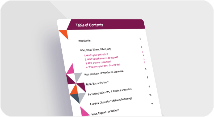 Table of Contents Introduction 2 Who, What, Where, When, Why 3 1. What’s your motivation? 3 2. What kind of products do you sell? 4 3. Who are your customers? 4 4. What does your labor situation like? 5 Pros and Cons of Warehouse Expansion 6 Build, Buy, or Partner? 7 Partnering with a 3PL: A Practical Alternative 9 A Logical Choice for Fulfillment Technology 10 Move, Expand – or Neither? 11 Time to Expand Your Ecommerce Warehouse? A Guide from Extensiv 1