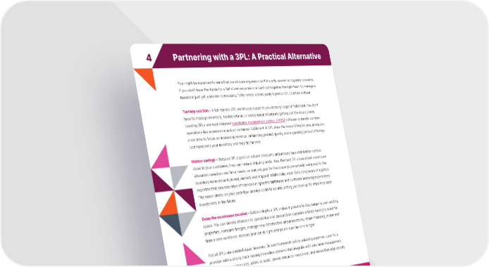 4 Partnering with a 3PL: A Practical Alternative You might be surprised to learn that warehouse expansion isn’t the only answer to capacity concerns. If you don’t have the funds for a full-blown expansion or can’t put together the right team to manage a transition just yet, consider outsourcing fulfillment to a third-party logistics (3PL) partner instead. Turnkey solution – A full-service 3PL warehouse supports you at every stage of fulfillment. You don’t have to manage inventory, handle returns, or worry about shipments getting out the door on time. Leading 3PLs use sophisticated warehouse management system (WMS) software to handle complex operations like ecommerce and omnichannel fulfillment. A 3PL does the heavy lifting for you, giving you more time to focus on increasing revenue, enhancing product quality, and expanding product offerings. Just hand over your inventory and they do the rest. Hidden savings – Because 3PLs pass on volume discounts and already have distribution centers close to your customers, they can reduce shipping costs. Also, the best 3PLs can adjust warehouse allocation based on real-time needs, so you only pay for the space you’re actually using and for the inventory received and picked, packed, and shipped. Additionally, most 3PLs bring years of logistics expertise that can also drive efficiencies in speed to fulfillment and customer unboxing experiences. This eases stress on your cash flow and ties costs to volume, letting you save up for other important investments in the future. Delay the warehouse decision – Outsourcing to a 3PL makes it possible to stay longer in your existing space. You can devote attention to operational and product line upgrades without having to scout for properties, compare designs, manage new construction and renovations, obtain financing, or hire and train a new workforce. Instead, you can sit tight until you’re sure the time is right. Not all 3PLs are created equal, however. Do your homework before selecting a partner. Look for a provider with a strong track record, innovative systems that integrate with your order management systems or shopping carts, ability to scale, proven return on investment, and values that align closely with your own. A 3PL partner can help you turbocharge your fulfillment efficiencies, so you can concentrate on adding product lines, improving customer satisfaction, and building your brand. Time to Expand Your Ecommerce Warehouse? A Guide from Extensiv 9