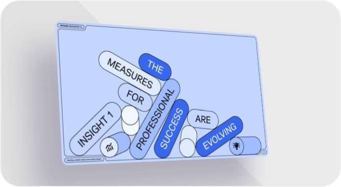 WeTransfer Ideas Report '22 Page 10 Page 12E volving Succes s The are me asures For Insight 1 Profes sional Rewriting romantic my ths of the creative industr y 11