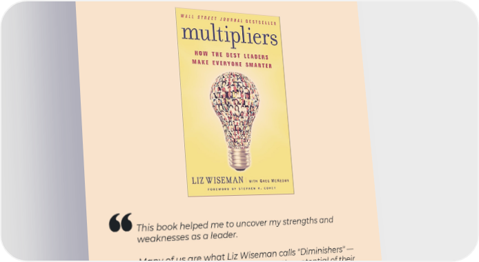 Multipliers by Liz Wiseman This book helped me to uncover my strengths and weaknesses as a leader. Many of us are what Liz Wiseman calls "Diminishers" — leaders that accidentally suppress the potential of their teams, despite best intentions. I loved that the book made me more self-aware.
