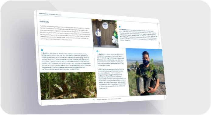 ENVIRONMENTAL / OUR ESG APPROACH ENVIRONMENTAL / SUSTAINABLE OPERATIONS Biodiversity In addition to promoting energy and water efficiency and waste management practices, the WCM Environmental pillar establishes proactive steps to preserve biodiversity in areas where Whirlpool Corporation operates. Natural ecosystems are vitally important for sustaining life on Earth, and they can be the basis for climate change adaptation and securing a thriving future for our communities. That’s why our efforts focus on control, protection and restoration of green areas, fauna and flora surrounding our sites, by partnering with key stakeholders in our communities. Our Cassinetta site in Italy borders the protected area of Brabbia Marsh, which is owned by Provincia di Varese and managed by LIPU (Italian League for Protection of Birds). It is qualified as a Zone with Special Protection and hosts nine species of trees, 15 species of fishes and 41 species of birds. As part of the WCM strategy, Whirlpool Corporation is connecting with public authorities and the local university to start a conservation project, aiming at helping to protect the local biodiversity. In Brazil , our operations are located in three important biomes: Atlantic Forest, Cerrado and the Amazon. Our sites are surrounded by a green area of more than 370,000 square meters, which includes four rivers and two water springs and is the habitat of more than 1,370 animal species, including mammals, birds, reptiles and amphibians. The green areas are used for environmental education and awareness campaigns with employees and the community. In 2021, our Joinville site welcomed a group of 24 students from four different countries represented by AIESEC that visited the green area in the site and learned about biodiversity preservation and the company’s initiatives for helping to protect the environment. The Ramos site in Mexico conducted a reforestation campaign with employees in 2021, in partnership with the nonprofit organization Apoya tu Bosque Local . Employees were invited to adopt trees, which were planted around the cities of Saltillo and Arteaga in areas that have suffered severe forest fires. In total, 713 trees were planted. In 2021, the site also received certification from the Environmental Secretary of Coahuila de Zaragoza as “Green Office Gold.” This is a voluntary program aiming at engaging employees in the participating organizations and promoting responsible environmental practices that benefit the environment. Five aspects are evaluated, including efficient use of electricity and water, waste reduction and separation, efficient use of fuel and maintenance of the vehicular part and efficient use of office and toilet materials. Whirlpool Corporation / 2021 SUSTAINABILITY REPORT 42 Whirlpool Corporation / 2021 SUSTAINABILITY REPORT 42