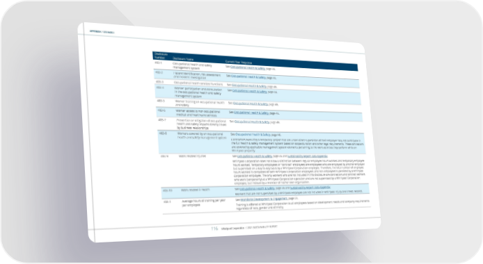 APPENDIX / GRI INDEX Disclosure Number Disclosure Name Current-Year Response 403-1 Occupational health and safety management system See Occupational Health & Safety , page 46 . 403-2 Hazard identification, risk assessment and incident investigation See Occupational Health & Safety , page 46 . 403-3 Occupational health services' functions See Occupational Health & Safety , page 46 . 403-4 Worker participation and consultation in the occupational health and safety management system See Occupational Health & Safety , page 46 . 403-5 Worker training on occupational health and safety See Occupational Health & Safety , page 46 . 403-6 Worker access to non-occupational medical and healthcare services See Occupational Health & Safety , page 46 . 403-7 Prevention or mitigation of occupational health and safety impacts directly linked by business relationships See Occupational Health & Safety , page 46 . 403-8 Workers covered by an occupational health and safety management system See Occupational Health & Safety , page 46 . Contractors executing a temporary project that are under direct supervision of their employer may not participate in the full health & safety management system based on scope/duration and other legal requirements. These contractors are covered by applicable management system elements pertaining to the work activities they perform while on Whirlpool property. 403-9 Work-related injuries See Occupational Health & Safety , page 46 and Sustainability Report Data Appendix . Whirlpool Corporation does not draw a distinction between regular employee hours worked and temporary employee hours worked. Temporary employees or “contract” employees are employees who are employed by another employer but supervised on a day-to-day basis by a Whirlpool Corporation employee. Therefore, the total number of employee hours worked is composed of both Whirlpool Corporation employees and non-employees supervised by a Whirlpool Corporation employee. The only workers who are not included in this disclosure are contractors and contract workers who work (temporarily) at a Whirlpool Corporation operation and are not supervised by a Whirlpool Corporation employee, but instead by a member of his/her own organization. 403-10 Work-related ill health See Occupational Health & Safety , page 46 and Sustainability Report Data Appendix . Workers that are not supervised by a Whirlpool employee are not included in Whirlpool Injury and Illness records. 404-1 Average hours of training per year per employee See Workforce Development & Engagement , page 51 . Training is offered at Whirlpool Corporation to all employees based on development needs and company requirements regardless of race, gender and ethnicity. Whirlpool Corporation / 2021 SUSTAINABILITY REPORT 116