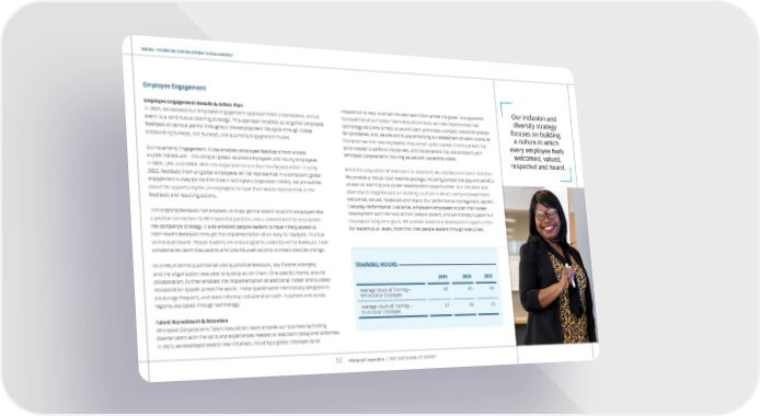 SOCIAL / WORKFORCE DEVELOPMENT & ENGAGEMENT Proposition to help us attract the best talent from across the globe. To supplement the expertise of our Global Talent Acquisition team, we have implemented new technology solutions to help us source talent and create a simpler, smoother process for candidates. And, we are continually enhancing our assessment of talent to ensure that when we hire new employees, they are set up for success in terms of both the skills needed to perform the job well, and the behaviors that are consistent with Whirlpool Corporation’s Enduring Values and Leadership Model. While the acquisition of new talent is important, we also focus on talent retention. We provide a robust total rewards package, including competitive pay and benefits as well as learning and career development opportunities. Our inclusion and diversity strategy focuses on building a culture in which every employee feels welcomed, valued, respected and heard. Our performance management system, Everyday Performance Excellence, empowers employees to plan their career development with the help of their people leaders, and we strongly support our employees’ long-term goals. We provide leadership development opportunities for leaders at all levels, from first-time people leaders through executives. Employee Engagement Employee Engagement Results & Action Plan In 2021, we evolved our employee engagement approach from a standalone, annual event to a continuous listening strategy. This approach enables us to gather employee feedback at various points throughout the employment life cycle through Global Onboarding Surveys, Exit Surveys, and quarterly Engagement Pulses. Our quarterly Engagement Pulse enables employee feedback from almost 65,000 individuals—including all global salaried employees and hourly employees in NAR, LAR, and EMEA. With the expansion to our Asia hourly population in early 2022, feedback from all global employees will be represented in a consistent global engagement survey for the first time in Whirlpool Corporation history. We are excited about the opportunity for all employees to have their voices represented in the feedback and resulting actions. This ongoing feedback has enabled us to gauge the extent to which employees feel a positive connection to Whirlpool Corporation and a commitment to help deliver the company’s strategy. It also enabled people leaders to have timely access to their team’s feedback through the implementation of an easy-to-navigate, intuitive online dashboard. People leaders are encouraged to understand the feedback, hold collaborative team discussions and take focused actions to create positive change. As a result of this quantitative and qualitative feedback, key themes emerged, and the organization was able to quickly act on them. One specific theme, around collaboration, further enabled the implementation of additional indoor and outdoor collaboration spaces across the world. These spaces were intentionally designed to encourage frequent, and more informal, collaboration both in-person and across regions, equipped through technology. Talent Recruitment & Retention Whirlpool Corporation’s Talent Acquisition team enables our business by finding diverse talent with the skills and experiences needed to lead both today and tomorrow. In 2021, we developed several new initiatives, including a global Employee Value 2019 2020 2021 Average Hours of Training— White Collar Employee 45 45 45 Average Hours of Training— Blue Collar Employee 37 48 25 TRAINING HOURS Our inclusion and diversity strategy focuses on building a culture in which every employee feels welcomed, valued, respected and heard. Whirlpool Corporation / 2021 SUSTAINABILITY REPORT 52
