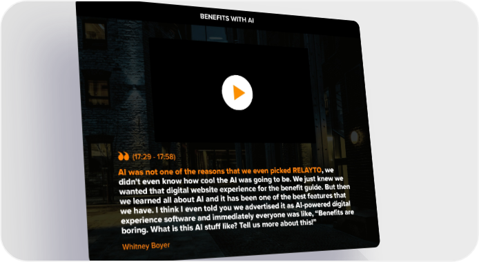 BENEFITS WITH AI 1. Domestic & General started out over 100 years ago, ensuring cattle and sheep rights. So not long after the Titanic went down there was a need all of a sudden to have protection and insurance on your livestock. (17:29 - 17:58) AI was not one of the reasons that we even picked RELAYTO, we didn't even know how cool the AI was going to be. We just knew we wanted that digital website experience for the benefit guide. But then we learned all about AI and it has been one of the best features that we have. I think I even told you we advertised it as AI-powered digital experience software and immediately everyone was like, “Benefits are boring. What is this AI stuff like? Tell us more about this!” Whitney Boyer