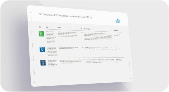 ESG Disclosures: U.N. Sustainable Development Goals (SDGs) O INTR SDG GOAL TARGET NO WSI INITIATIVES REFERENCE Protect, restore and By 2020, promote the implementation of sustainable 15.2 We are members of WWF’s Forests Forward, a program that works on the ground Climate & Energy, ANET promote sustainable management of all types of forests, halt deforestation, in forests of different types to demonstrate sustainable management and sourcing pages 27-28 PL use of terrestrial restore degraded forests and substantially increase practices. We recognize the Forest Stewardship Council® as the gold standard for ecosystems, sustainably afforestation and reforestation globally. certification of healthy forest management and sustainable timber, and continue to manage forests, combat source FSC wood to achieve our goal of 75% of products labeled with one or more of desertification, and our social or environmental initiatives. halt and reverse land degradation and halt biodiversity loss OPLE PE Promote peaceful and End abuse, exploitation, trafficking and all forms of 16.2 Our rigorous social compliance and audit programs are committed to eradicating Ethical Production, inclusive societies for violence and torture against children. human trafficking, child labor and forced labor in our global product supply chains. pages 45-48 sustainable development, provide access to justice for all and build effective, accountable and inclusive institutions at all levels PURPOSE Strengthen the means Encourage and promote effective public, public-private and 17.17 We partner with NGOs, third-party certifiers and field-level sustainability standards Certifications & of implementation civil society partnerships, building on the experience and to verify sustainability claims on select products and practices, sharing knowledge, Standards, pages and revitalize the resourcing strategies of partnerships. resources and driving sustainable business. 81-82 global partnership for sustainable development T 2021 T REPOR C A APPENDIX IMP 105 106