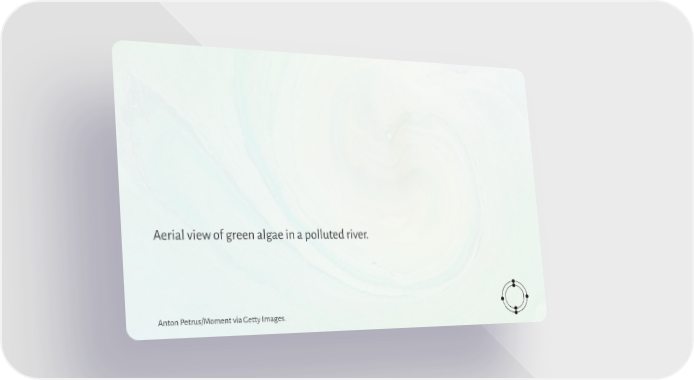 With Your Own Eyes: Climate Change In Photos Page 50 Page 52Aerial view of green algae in a polluted river. Anton Petrus/Moment via Getty Images.