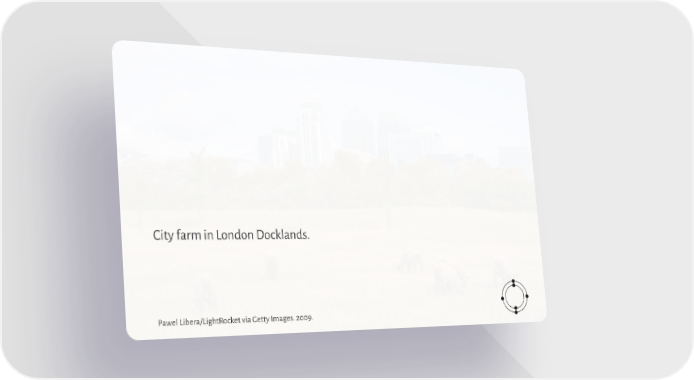 City farm in London Docklands. Pawel Libera/LightRocket via Getty Images. 2009.
