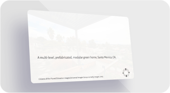 A multi-level, prefabricated, modular green home, Santa Monica, CA, Citizens of the Planet/Education Images/Universal Images Group via Getty Images. 2013.