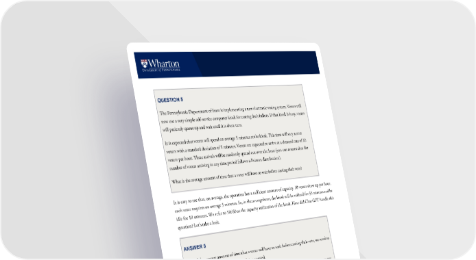 11 QUESTION 5 The Pennsylvania Department of State is implementing a new electronic voting system. Voters will now use a very simple self -service computer kiosk for casting their ballots. If that kiosk is busy, voters will patiently queue up and wait until it is there turn. It is expected that voters will spend on average 5 minutes at the kiosk. This time will vary across voters with a standard deviation of 5 minutes. Voters are expected to arrive at a demand rate of 10 voters per hour. These arrivals will be randomly spread out over the hour (you can assume that the number of voters arriving in any time period follows a Poisson distribution). What is the average amount of time that a voter will have to wait before casting their vote? It is e asy to see t hat , o n average, the operation has a sufficient amount of capacity. 10 voters show up per hour, each voter requires on average 5 minutes . So , in th e averag e hour, the kiosk will be utilized for 50 minu tes a nd be idle f or 1 0 m inutes. We refer to 50/60 as the capacity utilization of the kiosk. How did Chat GPT hand le this que stion? Let’s take a look. ANSWER 5 To find the average amount of time that a voter will have to wait before casting their vote, we need to calculate the average time that the kiosk is occupied. If the average time that a voter spends at the kiosk is 5 minutes, and the demand rate is 10 voters per hour, then the average time that the kiosk is occupied is 50 minutes per hour (5 minutes per voter * 10 voters per hour). The average time that the kiosk is not occupied is therefore 60 minutes per hour - 50 minutes per hour = 10 minutes per hour.