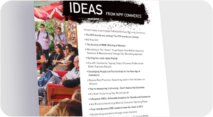 IDEAS FROM WPP COMMERCE • How Creepy is too Creepy? A Research Study On Living Commerce • The DTC brands are coming! The DTC brands are coming! • BS Free D2C • The Science of WOW: Winning at Walmart • Marketing to The "Green" Target Guest: How Refined Audience Selection & Measurement Changed Our Marketing Approach • Surfing the retail media Riptide • Era of E-Commerce: Tapping Today’s Discovery Platforms for Better Business Results • Developing People and Partnerships for the New Age of Commerce • Beyond Best Practices: Separating leaders from followers on Amazon • You’re measuring it all wrong – Start measuring Outcomes • It’s Alive! Humanizing Your Brand with AI • Influencer ABCs: Actionable Analytics for Brands and Commerce • Are Brands Undervaluing Minority Consumer Spending Power • Four trends every CMO needs to know for retail in 2019 • Accelerating commerce through visual discovery • The New Chinese Revolution: How China Is Reshaping Retail 103