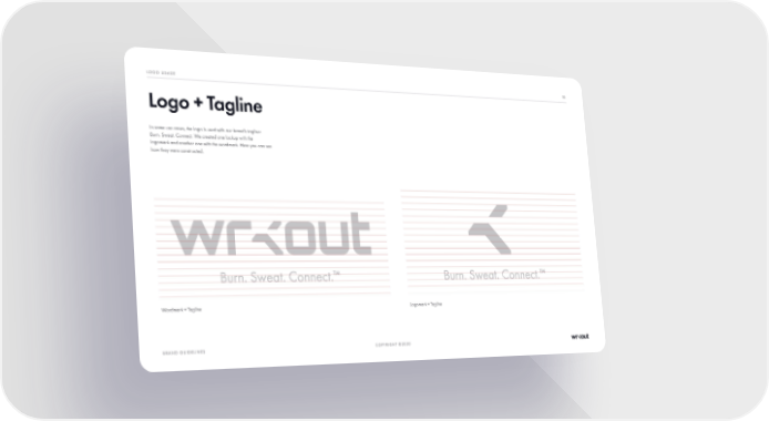 LOGO USAGE 55 Logo + Tagline In some use cases, the logo is used with our brand’s tagline: Burn. Sweat. Connect. We created one lockup with the logomark and another one with the wordmark. Here you can see how they were constructed. Wordmark + Tagline Logomark + Tagline BRAND GUIDELINES COPYRIGHT ©2020
