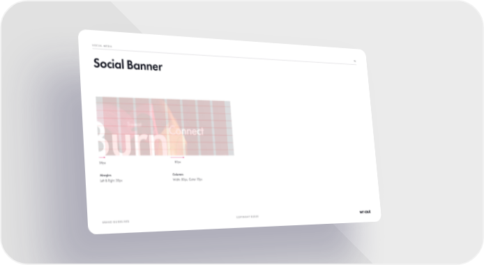 Wrkout Brand Book Page 93 Page 95SOCIAL MEDIA 94 Social Banner 38px 80px Margins Columns Left & Right: 38px Width: 80px, Gutter 15px BRAND GUIDELINES COPYRIGHT ©2020