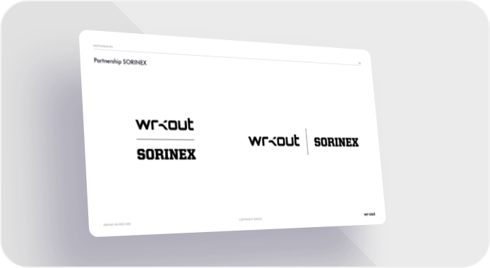 PARTNERSHIPS 136 Partnership SORINEX BRAND GUIDELINES COPYRIGHT ©2020 Wrkout Brand Book Page 135 Page 137
