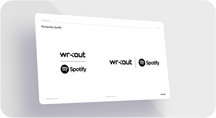 PARTNERSHIPS 138 Partnership Spotify BRAND GUIDELINES COPYRIGHT ©2020 Wrkout Brand Book Page 137 Page 139