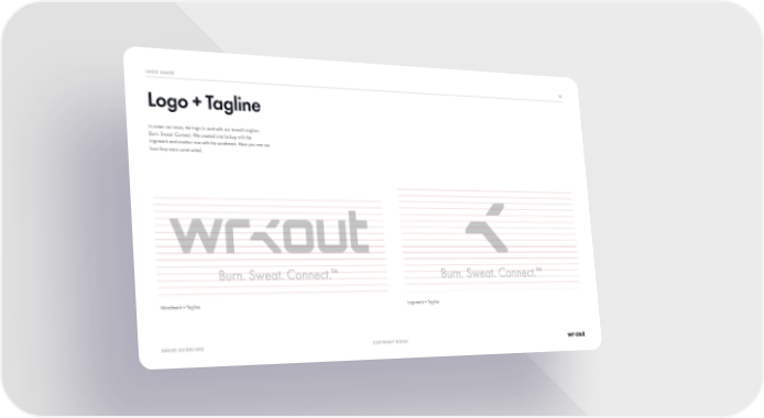 COPYRIGHT ©2020 In some use cases, the logo is used with our brand’s tagline: Burn. Sweat. Connect. We created one lockup with the logomark and another one with the wordmark. Here you can see how they were constructed. Logo + Tagline LOGO USAGE BRAND GUIDELINES 55 Wordmark + Tagline Logomark + Tagline