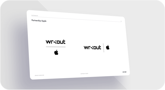 COPYRIGHT ©2020 BRAND GUIDELINES 11 6 PARTNERSHIPS Partnership Apple Wrkout Brand Book Page 115 Page 117
