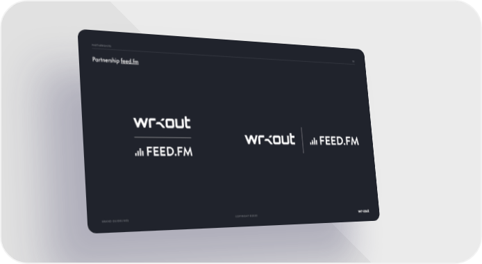 COPYRIGHT ©2020 BRAND GUIDELINES 121 PARTNERSHIPS Partnership feed.fm Wrkout Brand Book Page 120 Page 122