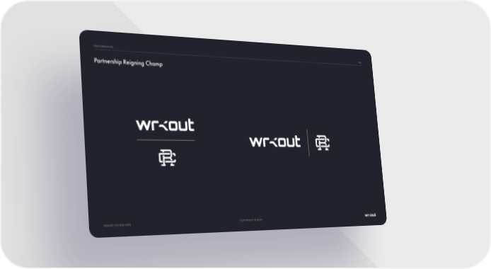 COPYRIGHT ©2020 BRAND GUIDELINES 13 3 PARTNERSHIPS Partnership Reigning Champ Wrkout Brand Book Page 132 Page 134