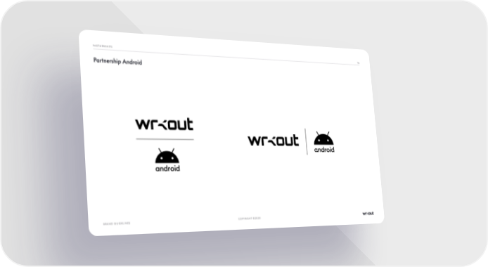 COPYRIGHT ©2020 BRAND GUIDELINES 11 4 PARTNERSHIPS Partnership Android Wrkout Brand Book Page 113 Page 115
