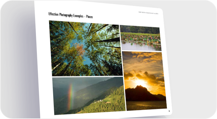 WWF-US Print Brand Guidelines 2012 Effective Photography Examples – Places 12 WWF Brand Book Page 13 Page 15