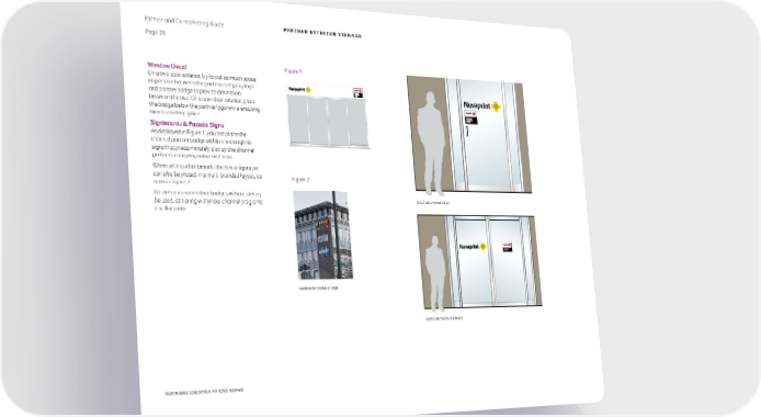 Partner and Co-marketing Guide Partner Exterior signage Page 26 Window Decal Figure 1 On a two-door exterior, try to put as much space as possible between the partner company logo and partner badge to provide distinction eseller between the two. On a one-door exterior, place the badge below the partner logo while ensuring minimum clear space. Signboards & Facade Signs As displayed in Figure 1, you can place the channel partner badge within a rectangle in signs that predominately display the channel partner’s company name and logo. When selling other brands, the Xerox signature can also be placed in a multi-branded layout, as Figure 2 seen in Figure 2. It is recommended that badges without tiering be used, as tiering within our channel programs Decal use on single door can fluctuate. Authorized Reseller Multi-brand exterior sign Decal use on double doors ©2018 Xerox Corporation. All rights reserved.