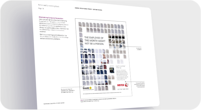 Partner and Co-marketing Guide Xerox PROVIDED PRINT ADVERTISING Page 18 Maintaining Company Separation Xerox can provide Xerox branded advertising for partner use. The partner logo, contact details and a call to action may be included on the advertising in the designated location. Always include the relationship information so the relationship is clear to the intended audience. Both the partner logo and relationship line THE EMPLOYEE OF should always be smaller than the Xerox logo and act as secondary elements. THE MONTH MIGHT NOT BE A PERSON. Xerox branded look and feel. ® ® Xerox ConnectKey Technology Introducing a new workplace assistant that goes beyond the expected. An intuitive user interface helps you print from mobile devices, access cloud-based productivity services, translate documents and customize workflows—all with industry-leading security. Xerox logo is the primary element and the partner logo and relationship line are Include partner logo and xerox.com/connectkey secondary elements. relationship line. Logo and line A Xerox Document Technology Partner are smaller than Xerox Logo. ©2017 Xerox Corporation. All rights reserved. Xerox®, Xerox and esign®, ConnectKey® and “et The age ree are trade ars o€ Xerox Corporation in the ‚nited tates andƒor other co„ntries. Note: On Xerox provided co-branded asset, partner is to include logo and relationship line. ©2018 Xerox Corporation. All rights reserved. Logo and text are smaller than the Xerox logo.