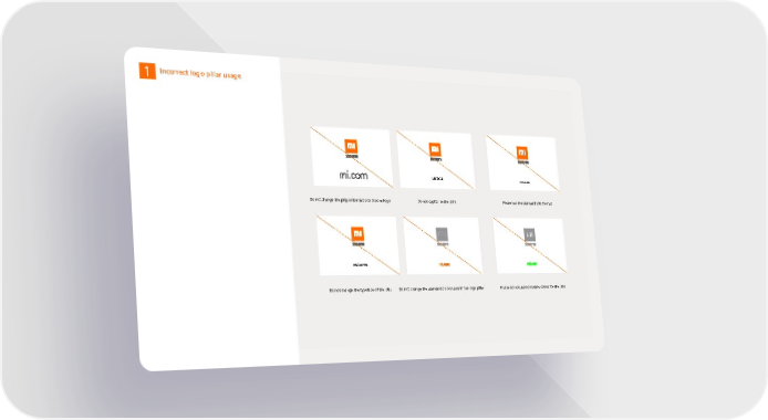 mi.com MI.COM www.mi.com Incorrect logo pillar usage Do not change the proportion ratio to Xiaomi logo Do not change the typeface of the URL Do not capitalize the URL Do not change the standard colors used in the logo pillar Please use the standard URL format Please do not use non brand colors for the URL