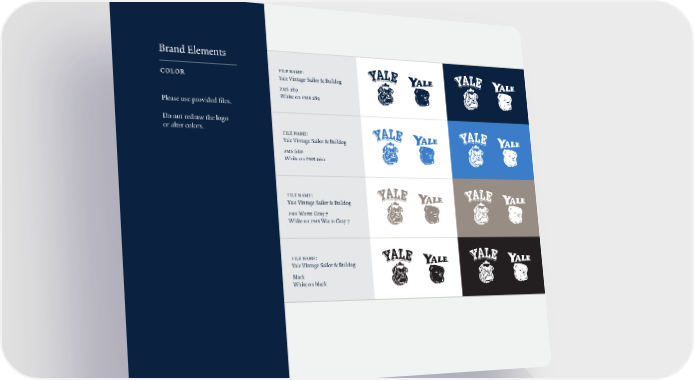 Brand Elements color file name: Yale Vintage Sailor & Bulldog pms 289 White on pms 289 Please use provided files. Do not redraw the logo or alter colors. file name: Yale Vintage Sailor & Bulldog pms 660 White on pms 660 file name: Yale Vintage Sailor & Bulldog pms Warm Gray 7 White on pms Warm Gray 7 file name: Yale Vintage Sailor & Bulldog Black White on black