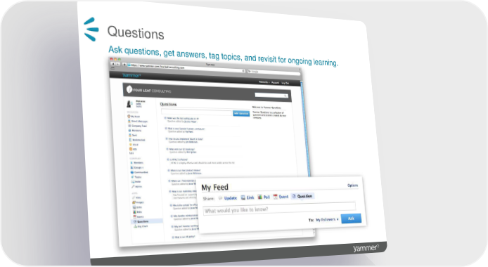 Groups Create and join public and private groups. Collaborate within your network. Yammer Page 25 Page 27