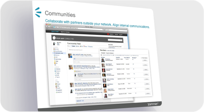 Profile Create a profile, share your background and expertise. Get to know colleagues. Yammer Page 23 Page 25