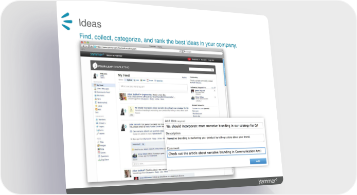Questions Ask questions, get answers, tag topics, and revisit for ongoing learning. Yammer Page 28 Page 30
