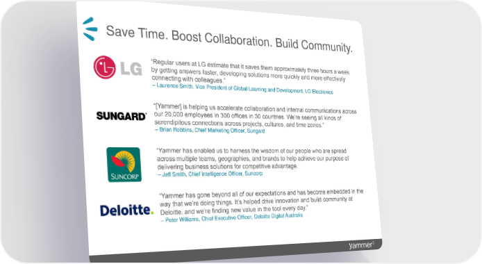 Accolades • TechCrunch50 Winner (2008) • One of Lead411’s “Hottest Companies in San Francisco” (2010) • Extensive press coverage and recognition Yammer Page 15 Page 17