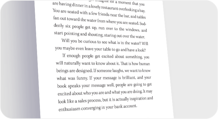 202 You Have a Book in You important this is! People aren’t on Facebook to be sold something. 吀栀is doesn’t mean they won’t want to buy, provided you give enough time and information for that desire to naturally emerge. How will it emerge? Imagine for a moment that you are having dinner in a lovely restaurant overlooking a bay. You are seated with a few friends near the bar, and tables fan out toward the water from where you are seated. Sud- denly six people get up, run over to the windows, and start pointing and shouting, staring out over the water. Will you be curious to see what is in the water? Will you maybe even leave your table to go and have a look? If enough people get excited about something, you will naturally want to know about it. 吀栀at is how human beings are designed. If someone laughs, we want to know what was funny. If your message is brilliant, and your book speaks your message well, people are going to get excited about who you are and what you are doing. It may look like a sales process, but it is actually inspiration and enthusiasm converging in your bank account. Make Friends—and Add a Personal Message Facebook provides an easy, permission- based system for inviting people to connect with your pro昀椀le page—in other words, for becoming a Facebook friend. 吀栀e 昀椀rst thing it does (and most social networking sites do this), is ask you for access to your email address book so you can