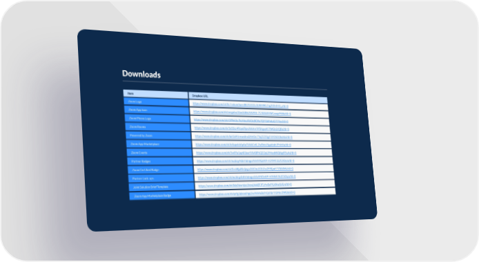 Downloads Item Dropbox URL Zoom Logo https://www.dropbox.com/sh/0s7rx6uw3uerd8t/AAA3Iz3UWVRCZJg2I3fnfHD_a?dl=0 Zoom App Icon https://www.dropbox.com/sh/zongobu32ae2d86/AAANh-7C4UtkXHWCvoqy9iA8a?dl=0 Zoom Phone Logo https://www.dropbox.com/sh/r5f9nk5c7kzhlxu/AADcBOYx7QFf1dHolpQ7l7kya?dl=0 Zoom Rooms https://www.dropbox.com/sh/5c03cz49zyai9pn/AAArxYifSHgsyh5TWGb2JQBia?dl=0 Powered by Zoom https://www.dropbox.com/sh/bxt5d41rewcdna3/AADc7TojZZZQgFUYDSO3bsX6a?dl=0 Zoom App Marketplace https://www.dropbox.com/sh/teitapvk66p4a7l/AACnK_Dv0VoU1gaXsbh7PvM4a?dl=0 Zoom Events https://www.dropbox.com/sh/5w09u1apt01sar9/AABP6QEOpLYMoydWQKgd95uAa?dl=0 Partner Badges https://www.dropbox.com/sh/mubiqy4d6rhdmgo/AAA9IGblV9-H3YMF35ZCXDyla?dl=0 Zoom Certified Badge https://www.dropbox.com/sh/0zc68ju8teljegn/AADmJtD5Zos2EfKjmF77DAAMa?dl=0 Partner Lock-ups https://www.dropbox.com/sh/mubiqy4d6rhdmgo/AAA9IGblV9-H3YMF35ZCXDyla?dl=0 Joint Solution Brief Template https://www.dropbox.com/sh/0dy0kwrdze1hcwj/AABFJFLYtvBxFfLXiNzljUGra?dl=0 Zoom App Marketplace Badge https://www.dropbox.com/sh/qnfg3qkos6hgq5w/AAAxBc9rQnhbrYrSMxrZNfGfa?dl=0