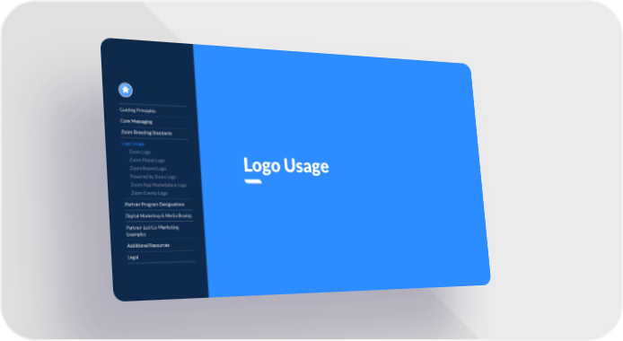 Guiding Principles Core Messaging Zoom Branding Standards Logo Usage Zoom Logo Zoom Phone Logo Zoom Rooms Logo Powered by Zoom Logo Zoom App Marketplace Logo Zoom Events Logo Partner Program Designations Digital Marketing & Media Buying Partner-Led Co-Marketing Examples Additional Resources Legal Logo Usage