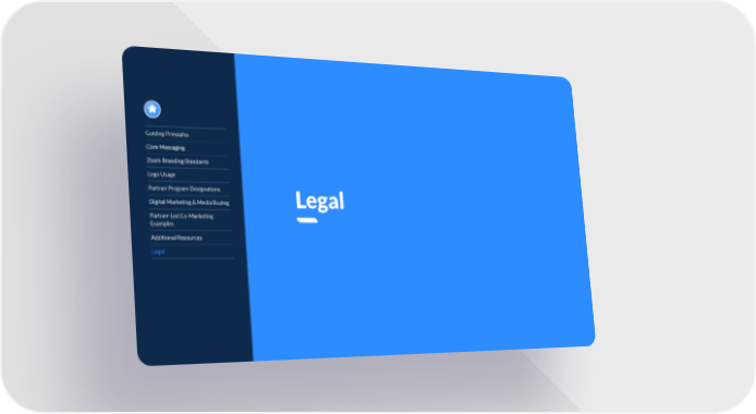 Guiding Principles Core Messaging Zoom Branding Standards Logo Usage Partner Program Designations Digital Marketing & Media Buying Partner-Led Co-Marketing Examples Additional Resources Legal Legal