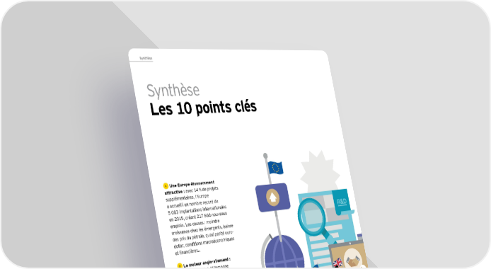 Synthèse Synthèse Les 10 points clés 1 Une Europe étonnamment attractive : avec 14 % de projets supplémentaires, l’Europe a accueilli un nombre record de 5 083 implantations internationales en 2015, créant 217 666 nouveaux R&D emplois. Les causes : moindre croissance chez les émergents, baisse des prix du pétrole, quasi parité euro- dollar, conditions macroéconomiques et financières… 2 Le moteur anglo-allemand : le Royaume-Uni et l’Allemagne dominent le classement et creusent l’écart avec toutes les autres destinations…France comprise. À l’aube d’un référendum qui pourrait infléchir considérablement son avenir, la « destination UK », bondit de 887 à 1065 projets. Et l’Allemagne poursuit sa dynamique avec une croissance de 9 %. 4 Handicaps réitérés : 5 Moins de « French Bashing », la perception de notre compétitivité- pas plus de « French Buying » : 3 La France distancée : prix reste très dégradée et pèse 80 % des dirigeants se déclarent le « site France » ne suit pas le sur l’attractivité scientifique, créative « plutôt » ou « très satisfaits » dynamisme européen avec un nombre ou tertiaire de la France. 72 % de la France (+12 points d’investissements en diminution de des décideurs internationaux jugent par rapport à 2014), sous l’effet 2 % (598 en 2015). Si la progression la fiscalité française peu ou pas d’une communication moins clivante. des emplois créés par ces projets du tout attractive et son niveau En revanche, moins d’un quart des (+8 %, de 12 579 à 13 639 entre de charges sociales est regretté investisseurs envisagent des projets 2014 et 2015) est une bonne par 73 % d’entre eux. en France en 2016 (-11 points). nouvelle, elle reste à relativiser par rapport à la dynamique européenne (+17 %). 4 Baromètre de l'Attractivité de la France 2016