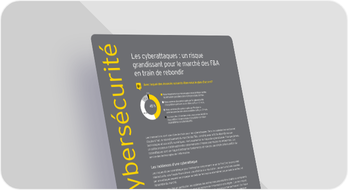 é Les cyberattaques : un risque grandissant pour le marché des F&A en train de rebondir Q : Avec lequel des énoncés suivants êtes-vous le plus d’accord? urit 2 % Nous resserrons nos mesures pour nous protéger contre 12 % les intrusions possibles dans notre processus de F&A. Nous sommes plus préoccupés par la cybersécurité 45 % d’acquisitions prévues ou de cibles qu’il y a 12 mois. 41 % Nous sommes plus préoccupés par l’incidence commerciale des intrusions possibles qu’il y a 12 mois. Au cours des 12 derniers mois, nous avons décidé de éc nous retirer d’un processus d’acquisition en raison s de problèmes de cybersécurité. Les transactions sont une cible de choix pour les cyberattaques. Dans le contexte transactionnel d’aujourd’hui, le rebondissement du marché des F&A, combiné avec la forte dépendance aux technologies et aux actifs numériques, vient augmenter le risque de cyberattaque. Plus que jamais, un solide processus d’atténuation des cybermenaces s’impose pour toutes les entreprises. Les cyberattaques sont un risque d’entreprise fondamental et non pas une simple préoccupation du service des technologies de l’information. Les incidences d’une cyberattaque Les risques d’une cyberattaque pour l’entreprise comprennent le vol de R et D et de propriété intellectuelle, une fraude financière et une atteinte à la réputation. Les perturbations causées par une attaque peuvent se propager au-delà de l’entreprise elle-même jusque dans le secteur et yber l’ensemble du marché. Dans le cas des F&A en particulier, les systèmes des entreprises peuvent être piratés ou compromis pendant le processus transactionnel, pour en extraire de l’information privilégiée. L’un des risques évidents réside dans la manipulation du cours de l’action et du processus transactionnel. Un risque C moins évident, mais tout aussi important, est la possibilité d’obtenir de l’information stratégique susceptible d’être utilisée pour perturber les activités essentielles de l’entreprise et nuire à sa position concurrentielle. L’identification du risque est l’étape clé pour pouvoir le gérer Le processus de F&A centralise la stratégie d’une organisation et l’information sur toutes ses fonctions en un seul référentiel. Cette situation représente un cyberrisque unique qu’il faut gérer. L’une des meilleures façons de gérer le cyberrisque pendant le processus de F&A consiste à déterminer de manière proactive qui peut cibler l’organisation – et quelle information cherche- t-on à voler. En identifiant ces menaces, les entreprises doivent considérer non seulement les pirates potentiels de l’extérieur de l’organisation, mais aussi les entités qui ont un accès autorisé à son référentiel, comme ses fournisseurs de la chaîne d’approvisionnement et de distribution ainsi que d’autres partenaires commerciaux. Même l’entreprise cible dans une transaction de F&A pourrait représenter une menace parce qu’une faiblesse de son programme de sécurité pourrait être exploitée. Une fois ces risques identifiés, des mesures préventives peuvent être prises pour les réduire. 12 | Baromètre mondial de la confiance des entreprises