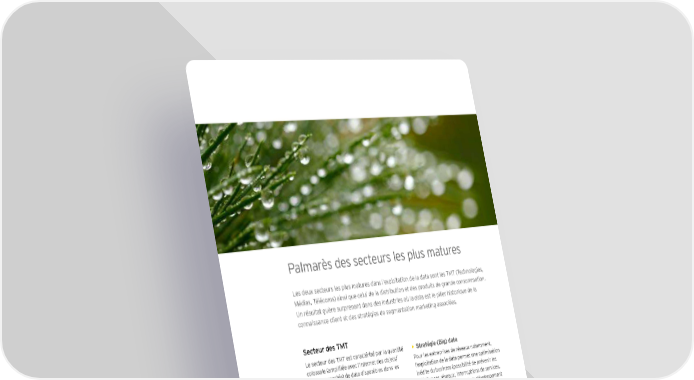 Palmarès des secteurs les plus matures Les deux secteurs les plus matures dans l’exploitation de la data sont les TMT (Technologies, Médias, Télécoms) ainsi que celui de la distribution et des produits de grande consommation. Un résultat guère surprenant dans des industries où la data est le pilier historique de la connaissance client et des stratégies de segmentation marketing associées. Secteur des TMT Le secteur des TMT est caractérisé par la quantité • Stratégie (Big) data colossale (amplifiée avec l’Internet des objets/ Pour les entreprises de réseaux notamment, objets connectés) de data disponibles dans les l’exploitation de la data permet une optimisation systèmes d’information. inédite du business (possibilité de prévenir les • Collecte des données défaillances réseaux, interruptions de services, résiliations d’abonnement…), le développement En matière de remontée des données issues des de « services intelligents » et la valorisation de réseaux sociaux ou de l’open data, les TMT sont en données auprès de tiers. Sur ce dernier point, à deuxième position derrière la grande distribution. titre d’exemple, les trois plus grands opérateurs Elles représentent le tiers des entreprises du panel de télécoms de Grande-Bretagne ont constitué collectant des données sociales et le quart de une société commune, Weve, pour vendre à celles ayant recours à l’open data. des annonceurs les données (anonymisées) de leurs clients (données d’achat, données de géolocalisation, données Internet…). 8 | (Big) data : où en sont les entreprises françaises ?