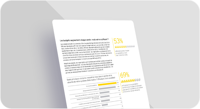 Les budgets augmentent chaque année : mais est-ce suffisant ? Les budgets alloués à la cybersécurité ont augmenté régulièrement entre 2013 et 2016 : 53% 53% des répondants affirment ainsi que leur budget s’est accru au cours des 12 derniers mois, contre 43% en 2013. De même, 55% des répondants déclarent que leurs budgets augmenteront dans les 12 prochains mois, contre 50% en 2013. Parallèlement, les montants dépensés suivent une courbe similaire : les organisations qui dépensent entre affirment que leur budget 10 et 50 millions de dollars sont plus nombreuses qu’en 2013, et si 76% des intervenants a augmenté au cours consacraient moins de 2 millions de dollars au total (en incluant les personnes, les des 12 derniers mois. processus et les technologies), ils ne sont plus que 64% aujourd’hui. Malgré ces progrès, les organisations sont nombreuses à estimer qu’elles ont besoin de davantage de financement : 61% des répondants évoquent les contraintes budgétaires comme un obstacle majeur et 69% demandent une augmentation de 50% de leur budget. Mais l’argent ne fait pas tout. S’il peut aider à pallier une pénurie de compétences, il ne permet pas nécessairement d’obtenir le soutien du comité exécutif. Quels principaux obstacles rencontrez-vous dans la gestion de la sécurité de votre système d’information ? (Plusieurs choix possibles) 69% Contraintes budgétaires 61% Manque de personnel compétent 56% estiment qu’une augmentation de 50% de leur budget est nécessaire Manque de sensibilisation ou de soutien des cadres 32% pour garantir la protection du système Manque d'outils de qualité pour gérer la sécurité d’information de leur entreprise. de l'information 30% Problèmes de management et de gouvernance 28% Fragmentation de la conformité/réglementation 19% Autre (précisez) 6% e 19 édition de l’étude EY sur la sécurité de l’information (2016) | 15