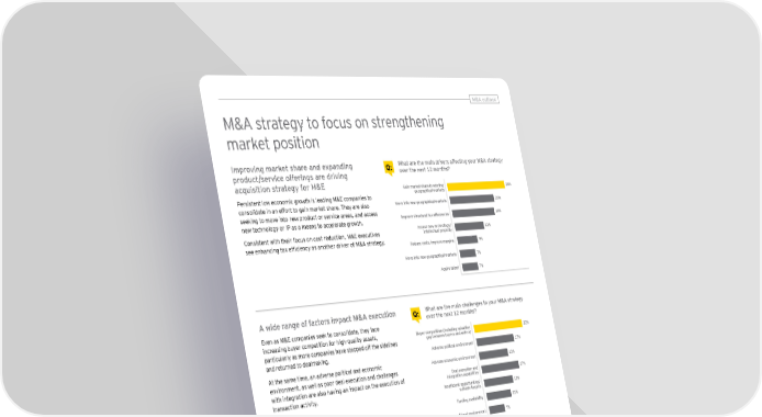 MM&&AA o ouuttllooookk M&A strategy to focus on strengthening market position Improving market share and expanding Q: What are the main drivers affecting your M&A strategy product/service offerings are driving over the next 12 months? acquisition strategy for M&E Gain market share in existing geographical markets 26% Persistent low economic growth is leading M&E companies to consolidate in an effort to gain market share. They are also Move into new geographical markets 20% seeking to move into new product or service areas, and access Aehjgn]kljm[lmjYdlYp]^Õ[a]f[a]k 19% new technology or IP as a means to accelerate growth. Access new technology/ 13% Consistent with their focus on cost reduction, M&E executives intellectual property see enhancing tax effi ciency as another driver of M&A strategy. Reduce costs, improve margins 9% Move into new geographical markets 7% Aquire talent 7% A wide range of factors impact M&A execution Q: What are the main challenges to your M&A strategy over the next 12 months? Even as M&E companies seek to consolidate, they face increasing buyer competition for high-quality assets, Buyer competition (Including valuation 22% particularly as more companies have stepped off the sidelines gap between buyers and sellers) and returned to dealmaking. Adverse political environment 17% At the same time, an adverse political and economic Adverse economic environment 13% environment, as well as poor deal execution and challenges with integration are also having an impact on the execution of Deal execution and 17% integration capabilities transaction activity. Afkm^Õ[a]flghhgjlmfala]k' suitable targets 13% Funding availability 11% Regulatory or antitrust environment 7% Uncertain tax environment 0% Access to new technologies and product Q: What is the main strategic driver for pursuing an innovation lead M&E companies to explore acquisition outside your own sector? deals outside their sector Access to new materials or 40% Competition for consumer attention is propelling M&E companies production technologies to differentiate their content and IP, leading 75% of respondents New product innovation 35% to use M&A to gain access to new technologies, platforms and to Reacting to competition 15% innovate products to achieve a competitive edge. Alongside their desire to outpace the competition, M&E Technology and digitalization 5% companies are looking to acquire to simply keep up with Changes in customer behavior 5% accelerating technology changes that are having an impact across the M&E enterprise. Capital Confi dence Barometer | 11